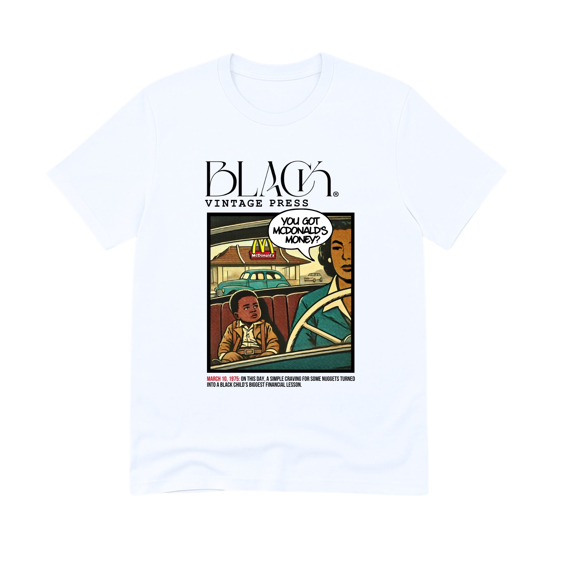This shirt pays tribute to a legendary phrase passed down like family tradition. A universal clapback that united generations under one unshakable truth: wanting a Happy Meal didn’t mean you were getting one. What started as a sarcastic reply from a black mother to her child has echoed through generations deserving to be honored by Black Vintage Press.