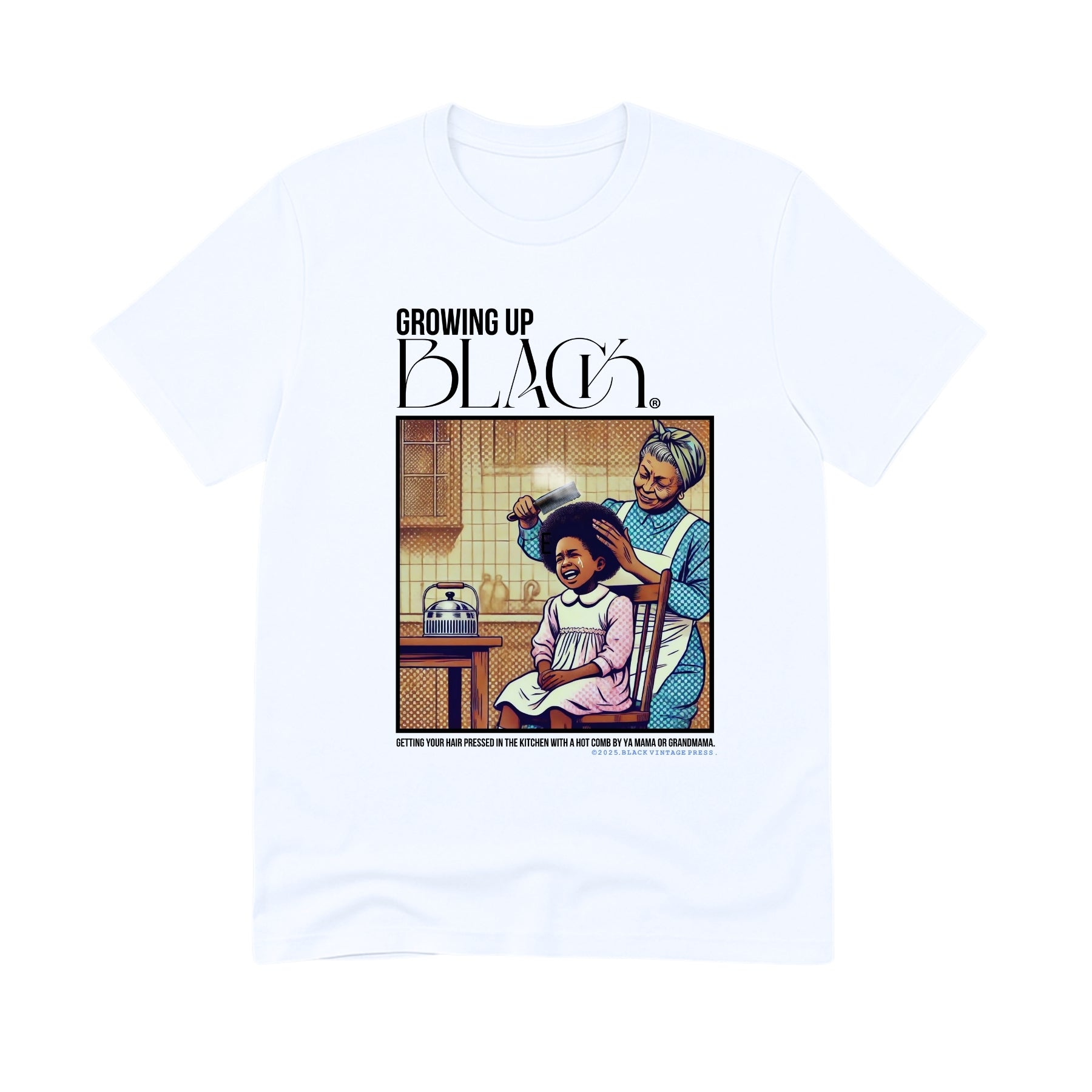 There was no greater test of strength, trust, or scalp endurance than wash day at Grandma’s house. This tee captures a sacred rite of passage—when love came in the form of a hot comb, a steady hand, and a warning to “stop movin’.” The smell of Blue Magic, the hiss of the stove, and the slight sizzle of fear. Black Vintage Press pays homage to all the little Black girls who sat on that kitchen chair and came out transformed. Not just sleeker, but stronger.